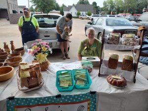 The Silveys had quilts, bibs, potholders as well as sourdough bread and rolls, kale, lettuce and radishes and jams and zucchini and banana bread.