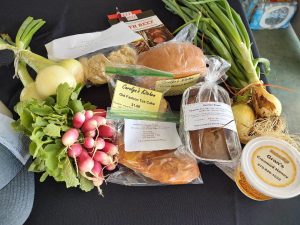 There was a drawing for donated items from the vendors at the hospitality table, hosted by Farm Credit. The winner was Mary Ann Leroux. The basket I used onions, bread, radishes, tea cake, honey, zucchini bread.