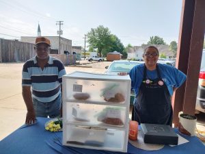Hope Connexion had plants for sale. Terry Kirkpatrick had Hannah’s Berries, onions, beets, snap peas. The Salinas family had cabbage, onions, squash, broccoli, jelly and honey. Joseph, known as “the mint man” had cookies. Farm on the Hill had a variety cuts of beef.
