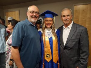The salutatorian, Isabella Lewallen,  talked about remembering Kindergarten like it was yesterday. She stated  every student had worked as hard as she had to get there. She went on to relate humorous memories such as a student falling over in her chair but mostly she remembered cheering on everybody and working as a team. She advised the younger students not to rush their high school years and not to spend all their time studying.