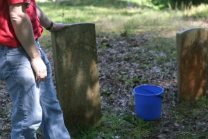 Historic Washington held a Cemetery Workshop May 27th at the Pioneer Cemetery. Josh Williams and Melissa Nesbitt were the instructors. The workshop details how to safely clean weathered headstones. Surprisingly, many of these old stones can be stained and permanently damaged if cleaned with the wrong substance.