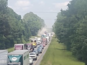 Two separate accidents Monday combined to snarl traffic on I-30 westbound.  Originally a single car accident near mile marker 25 was the cause of concern about 2:15pm.  Not long afterwards an 18 wheeler turned over in front of the weight scales on I-30 requiring traffic to be routed through the weight station.  This meant traffic, once moving, could only go about 5 to 10 miles per hour.  I-30 westbound was still backed up east of Hope two hours later.  Multiple law enforcement and fire departments responded as did Pafford.  It’s not known how many were transported for medical service but there were calls for a medical helicoptor.