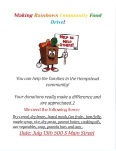 Making Rainbows Food Drive July 13th