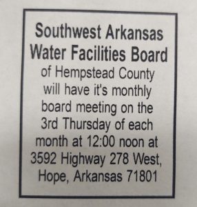 Southwest Arkansas Water Facilities Board Meets August 17th
