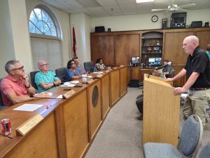 The Hope City Board met in City Hall on Tuesday evening. After the invocation, pledge, and approval of the minutes for two meetings,  an ordinance was discussed implementing a marriage provision for members of the Hope Local Fire Pension fund.  With the transfer of management of the Fireman’s pension plan to LOPFI it was noticed that one member was married within five years after retirement. In order for the spouse to be covered a provision needed to be passed. After City Attorney Randy Wright read the provision, the board passed it.   There are 11 people in the plan. All except two members are enrolled in LOPFI as they have yet to turn in the paperwork. Efforts have been made to contact them and offers have been made to help them with the paperwork. Paperwork needs to be submitted by August 18th.