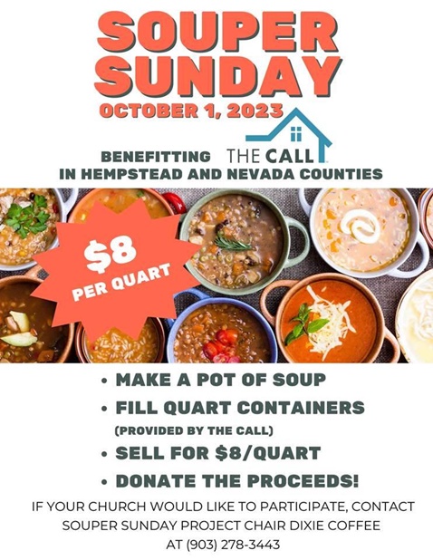The CALL in Hempstead and Nevada Counties will host its annual “Souper Sunday” fundraiser on Sunday, October 1. The annual fundraiser gives local church congregations an opportunity to make and sell soups to support the […]