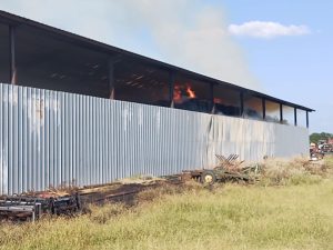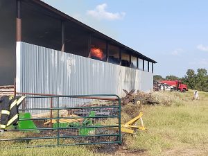At least a half-dozen rural volunteer fire departments were dispatched to rural Hempstead County this afternoon to battle a barn fire. Firemen were dispatched mid-afternoon to the Ben Runyon Farm on Hempstead County Road 37. Bingen VFD initially was dispatched, but the size and intensity soon led to mutual aid from Yancey, McCaskill, Washington, Ozan, and County Line from Howard County. A cause has yet to be determined. Photos by Mark Keith
