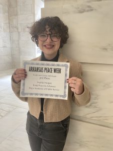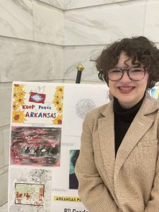 Sophia Finigan placed 3rd in the 8th grade category with her artwork, “Keep Peace In Arkansas.” Sophia attends the Hope Academy of Public Service.