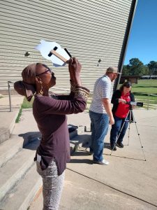 There was a partial eclipse viewing at UAHT outside Hempstead Hall on Saturday (10/14). Inside was an explanatory viewing of a full eclipse in Utah. The activity was good preparation for the total solar eclipse set for April 8th of next year.