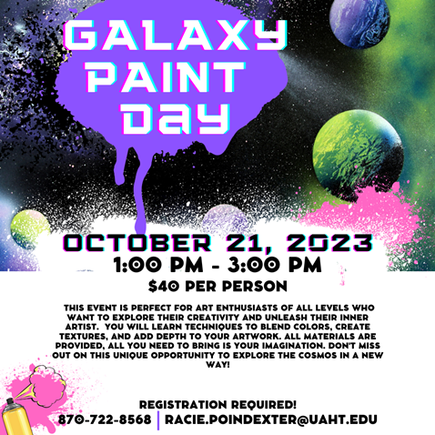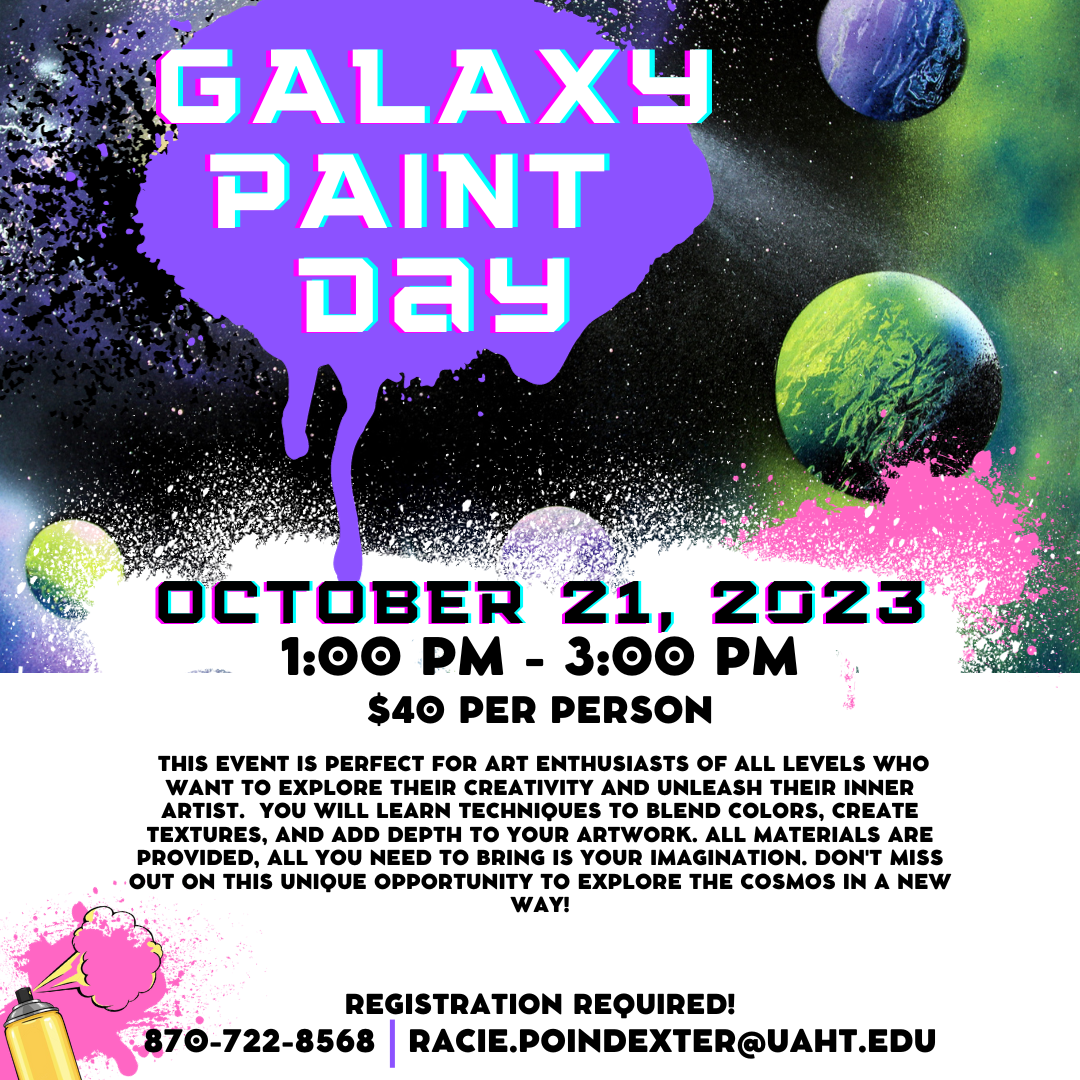 Embark on a journey through the universe of colors and create your own cosmic masterpiece in Galaxy Paint Class at the University of Arkansas Hope-Texarkana. […]
