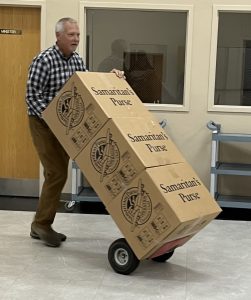 Members of Hope Methodist Church teamed with First Baptist Church of Nashville, AR to load boxes for Operation Christmas Child. Donations from the Southwest Arkansas District totaled an incredible 17,600 shoeboxes! Nashville First Baptist Church was presented an award for twenty years of commitment to Samaritan’s Purse.