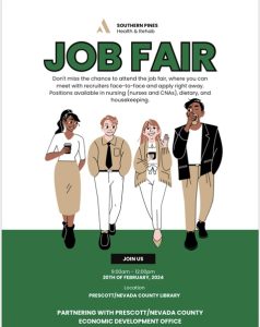 Southern Pines is hosting a job fair from 9 a.m. until noon Tuesday, Feb. 20, at the Nevada County Library.