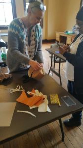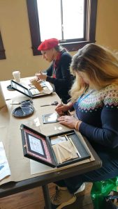 Sunday’s workshop included beginning leather sewing, recreating a 200-year old newspaper, and a workshop on dressing for the heat.