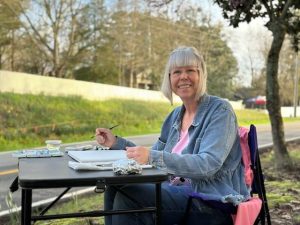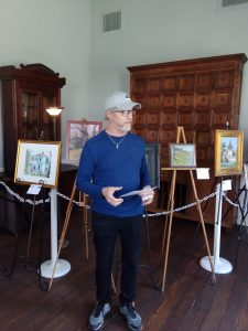 Paintings were oil, acrylic and watercolors. The artists were inspired by both the buildings and nature and painted Historic Washington with a church, the catalpa trees, the courthouse and other places in the Park.