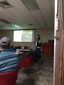 Jonathan Kubesch, originally from Ohio, presented Future Forage Programs. After talking about his background and the difference between forage grown here and elsewhere in the country. He talked about the types of grass grown in Arkansas and stated it can be grown year-round here. Kubesch stated the best bang for the buck was 2 to 3 species. He also stared he had worked with native grasses and seen their benefits such as drought resistance and resilience. Kubesch stated there are thresholds for success with corn and soybeans but not for forage and asked why not. He also talked about building resilience with the unusual weather. An audience member asked if he had any solution to wild hog and he stated no. Clark County has a program on this topic.