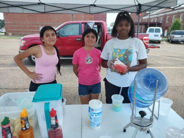 Some enterprising young ladies were taking advantage of the hot temperatures on Monday (8-5) to operate a lemonade stand on the First Baptist Church parking lot on Third Street downtown.  These ladies had a little more upscale stand than we remembered from fifty years ago…they not on ly made lemonade but they also had flavors to add to it!  If you missed out today, look for the ladies back on Third Street Tuesday with more lemonade.  They are Jazlyn Mejia, Ximenan Mejia, and Kylie Henry.