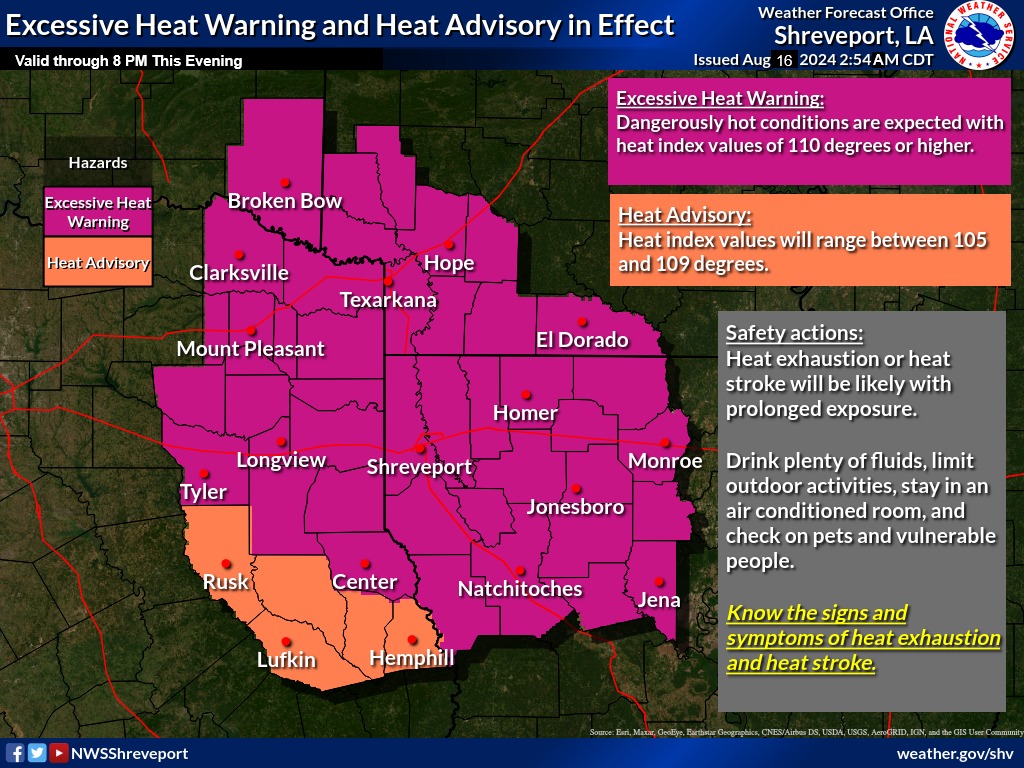 Featured Hempstead County News Nevada County News News Excessive Heat Warning in effect National Weather Service-Shreveport August 16, 2024