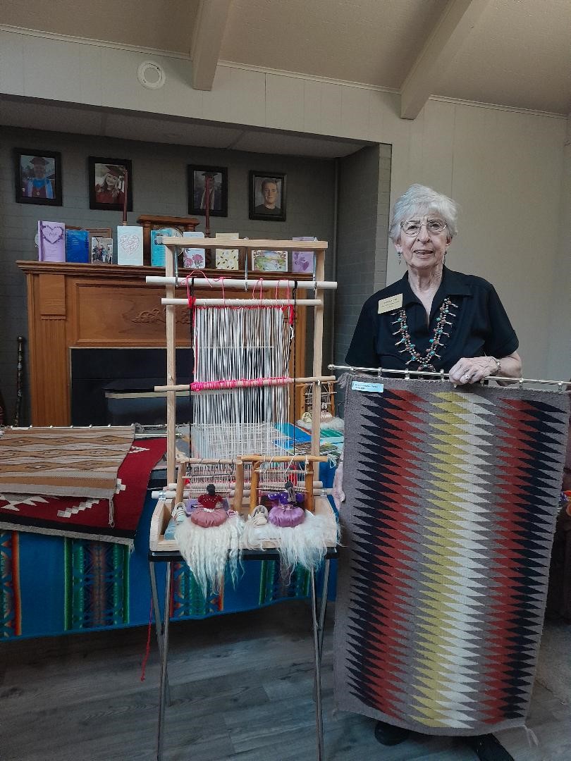 Bonnie Raff hosted the September 12th meeting of John Cain Chapter of DAR .  The program was on the weaving of Navajo rugs on hand made looms.  Bonnie shared about nine rugs from different parts of the reservation.  She and her husband, Sam, taught in a public school on the Navajo reservation.  Sam built the looms for the Navajo women.