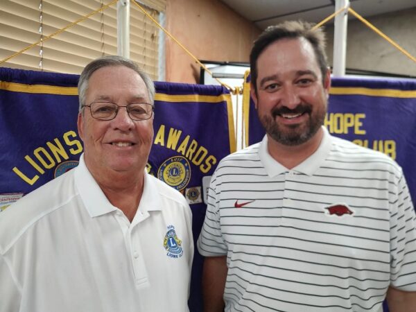 The Hope Lions heard from Marshall Craig of Padgett Hearing Aid Center in Hope on Monday. Craig explained some of the features of modern hearing aids and also explained some of the issues people face as their hearing deteriorates such as not understanding speech as well as they did at a younger age. Another sign it’s time to get your hearing checked is when it seems people are mumbling much of the time. Padgett Hearing Aid Center is located at 1206 South Main in Hope and can be reached at 777-9506. Craig is pictured with Lion’s President Steve Atchley.