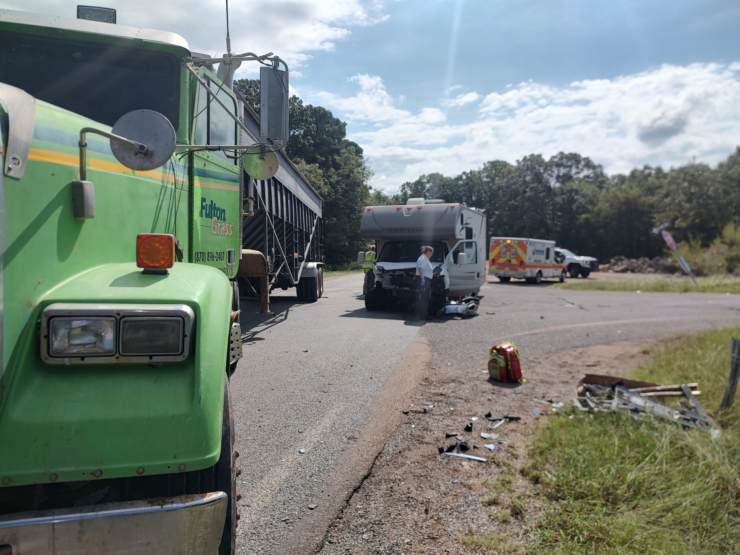 Featured News Accident on Off Ramp at Exit 18 in Fulton Mark Keith September 25, 2024 Hempstead County Deputies, Pafford, and the Fulton Volunteer Fire Departments responded to a two-vehicle accident Wednesday around 11:30am. Apparently an RV and a tractor -trailer collided on County Road 1 at the I-30 east bound off ramp.