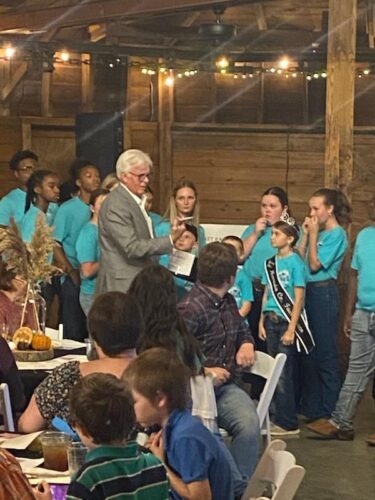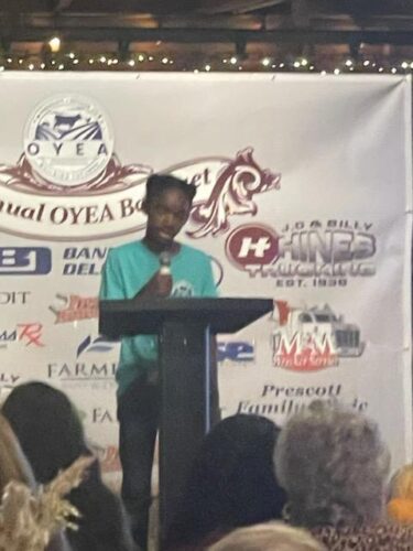 The annual OYEA banquet was held November 4th at the Barn at Willow Oaks. OYEA is the “Organization for Youth Education in Agriculture”. The banquet drew well over 200 people. The Prescott Curley Wolves cheerleaders, Prescott High Key Club, and OYEA students worked to set up the banquet, served the food, waited on tables, helped with the auction, and cleaned up after the event.