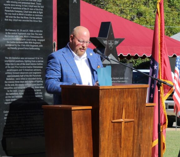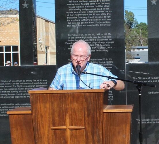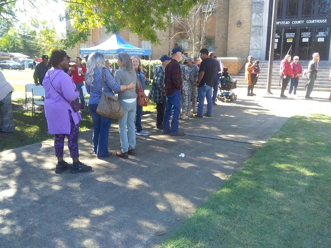 The annual Veterans Day program was held Monday (11-11) at the old Hempstead County Courthouse.  The weather was good and there was a great turnout.  The Hope High Cadet Corp presented the colors and handled the Pledge of Allegiance.  Wendy Martin brought the National Anthem.  The speaker was State Senator Steve Crowell of Magnolia.