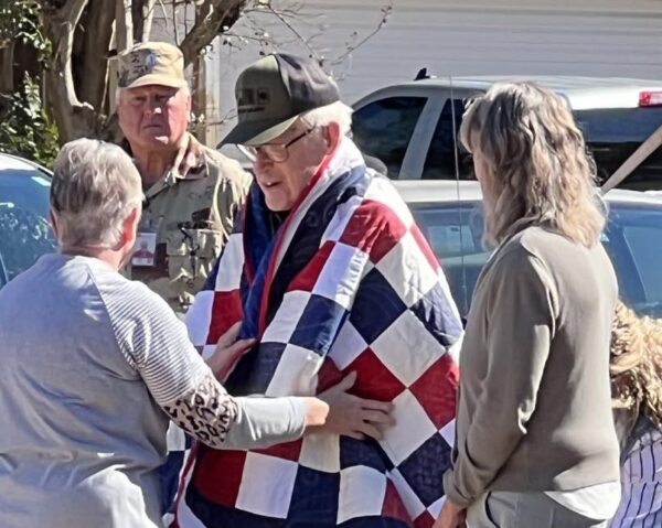 A highlight of the service was the presentation of quilts to some of the veterans by the Shover Springs Extension Homemakers Club.