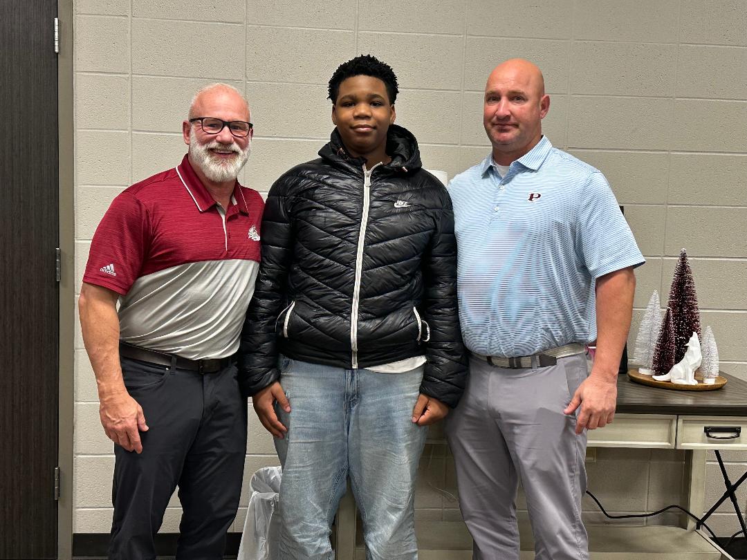 For the past couple of months, the Prescott School District has partnered with a member of the community to honor and celebrate the successes of students who are working hard to better themselves, are successful or who are making an effort to change habits and become more accomplished. At last night’s monthly school board meeting, Barry Marks, along with Superintendent Robert Poole, PHS principal Tommy Poole and PJHS principal Jay Turley, recognized Dwantesha Ross and Zackariah Armstrong for their successes. Dwantesha has become a more positive thinker and is making good grades and wise choices. Zachariah is a hard-working student who was the only 8th grader to score a 4 on his math Atlas interim. We are very proud of both of these young men. Mr. Marks presented them both with a $100.00 to show his respect and encourage them to continue doing what they are doing.