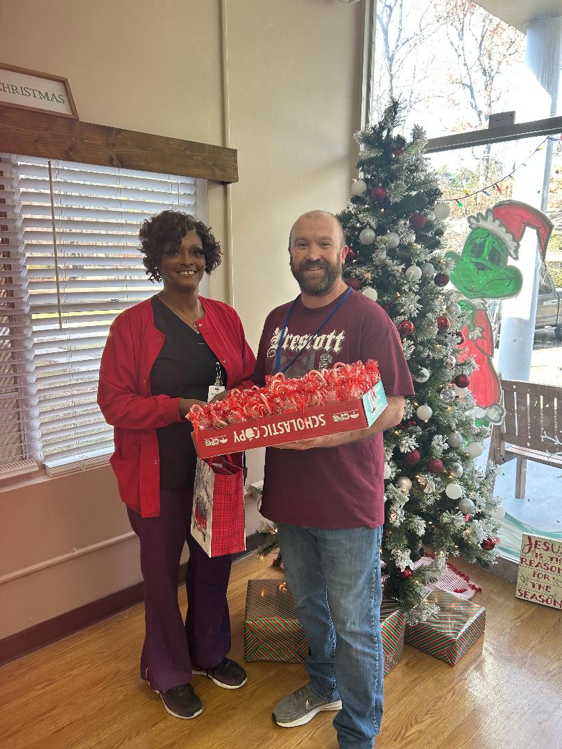 PRESCOTT – Prescott Junior High School students and the Prescott Junior High student council are blessed to be able to spread joy during the Christmas Season by giving treat bags that include hand sanitizer and candy to the residents of The Blossoms Care and Nursing Facility of Prescott. Mr. Christopher’s class along with Mrs. Debbie Maxwell’s students gave Christmas cards to each resident to show their Curley Wolf Pride in the Holidays. Ms. Jessica Frazier proudly accepted their gifts and Merry Christmas wishes!