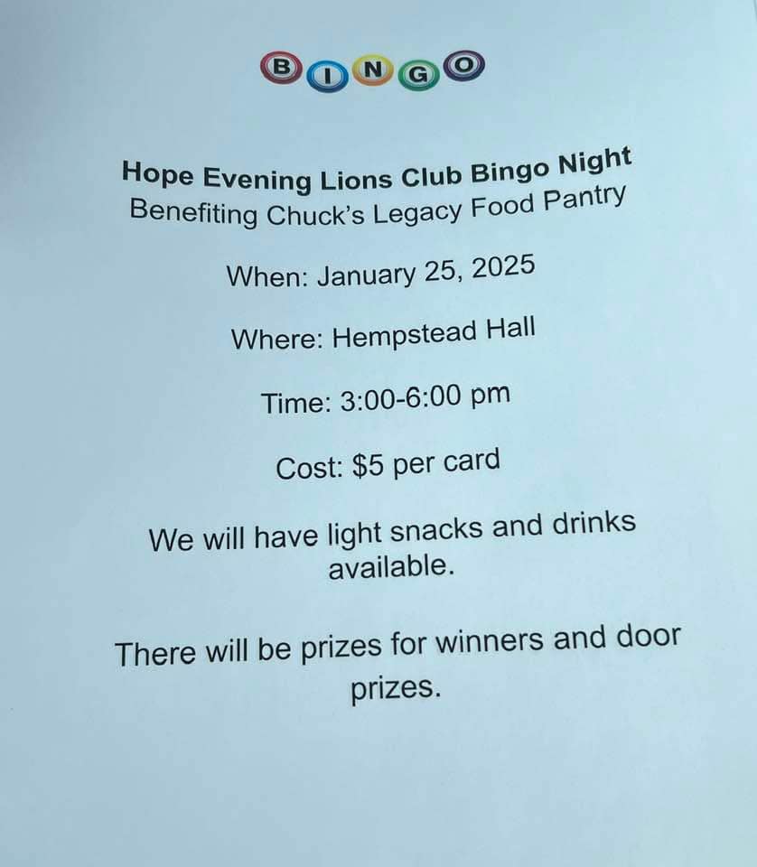 Featured Hempstead County News News Hope Evening Lions Club Bingo Night Dale Gathright, Jr. January 21, 2025