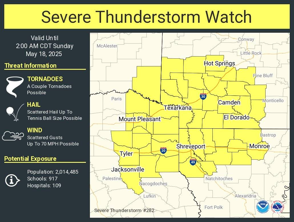 Featured Hempstead County News Nevada County News News Regional News Severe Thumdertorm Watch in effect for Hope-Prescott Region Storm Prediction Center May 17, 2025