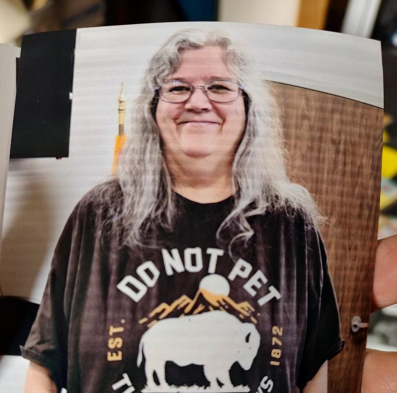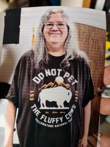 John Cain-Benjamin Culp DAR member, Cindi Neweson, presented a great program on the celebration of Yellowstone National Park’s 150th birthday. The park was established in 1872 as the first National Park. Bisson (Buffalo) Roosevelt Elk, Moose, Gray Wolves, Bears, Foxes, Cougars song birds and many other animals, insects and plant life can be found in the park. The park is mostly in Wyoming but some of it spills into Montana and Idaho. Notice the T-shirt that Cindi is wearing. “Don’t pet the fluffy Cows” as a warning of the danger of getting too close to the Buffalos. If you are interested in learning more about the DAR, contact Terrie James, Chapter Regent.