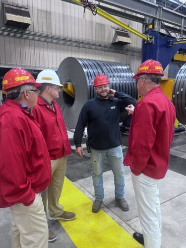 The Hempstead County Economic Development Corporation hosted a community visit with Arkansas Economic Development Commission International Business Development & Project Managers Monday (5-19) for a quick tour of the estimated $15 million dollar Slitter Expansion at New Millennium in Hope. Rail infrastructure was key to this project. City of Hope, HCEDC and Hope Water & Light partners were present for the tour.