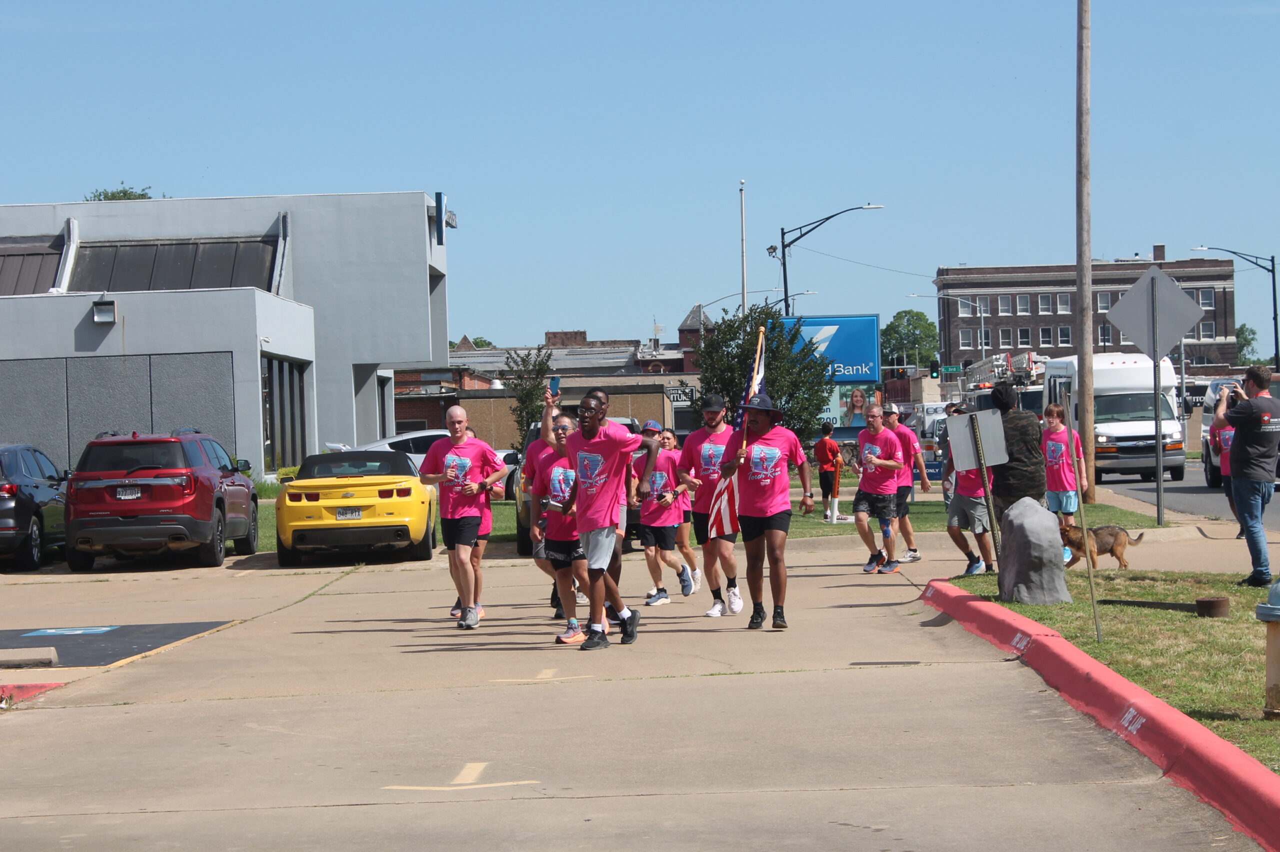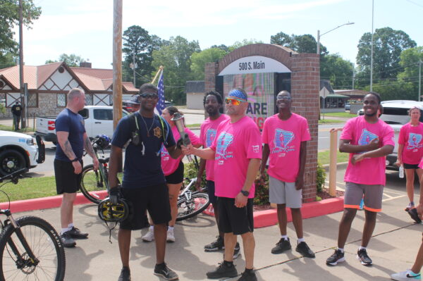 The runners stopped briefly for water and pictures at ROC before making their way to Prescott where the torch was handed off on its trek to Searcy.