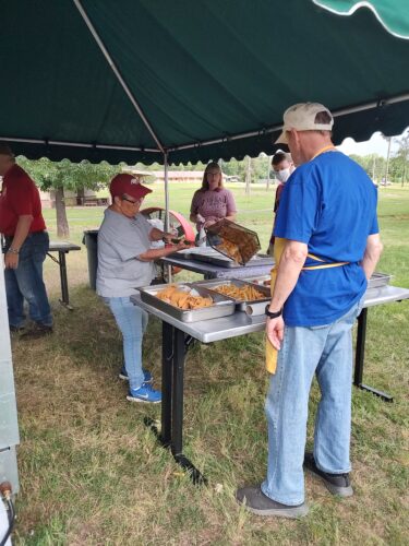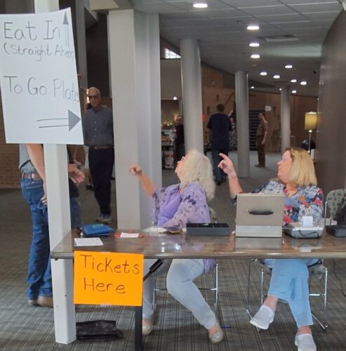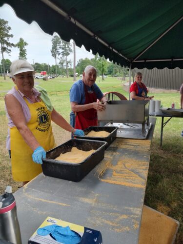 The annual Charitable Christian Clinic fish fry was held Thursday (5-22) at Hempstead Hall. The Hope Noon Lions prepared the fish, chicken, and fixings while members of the Evening Lions served with CCMC volunteers. Dinners were available “to-go” or “eat-in”. Following the meal, Bro. Neal Ridling and another guy handled the dessert auction. Many of Hempstead County ‘s best cooks prepared delectable cakes, pies, cookies, and other baked goods for the auction. Music was provided by the Harmenizers.