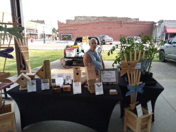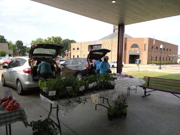The Hope Farmer’s Market was held on Tuesday morning (6-3) from 7am until 11am. With school out, temperatures climbing, and crops producin,g the farmer’s market has gained vendors and customers. Two vendors returned from being absent for a year. They were Tara Fleming with vegetables and Diane Young with flowers. Produce included tomatoes, squash, cucumbers, blackberries, eggplant, flowers. More than one vendor had flowers. Plants for sale included tomatoes, peppers, fig trees, flowers and a variety of herbs. One of the more unusual herbs was a lettuce leaf basil. Also for sale were jams, honey and homemade bat houses. State Farm insurance hosted the hospitality table.