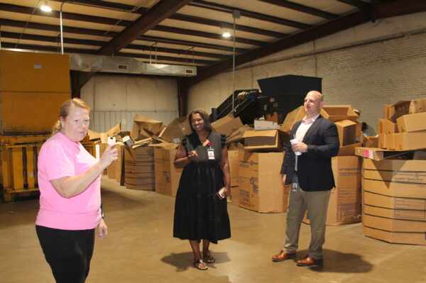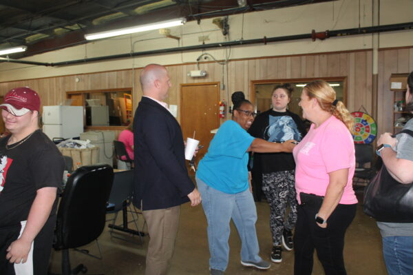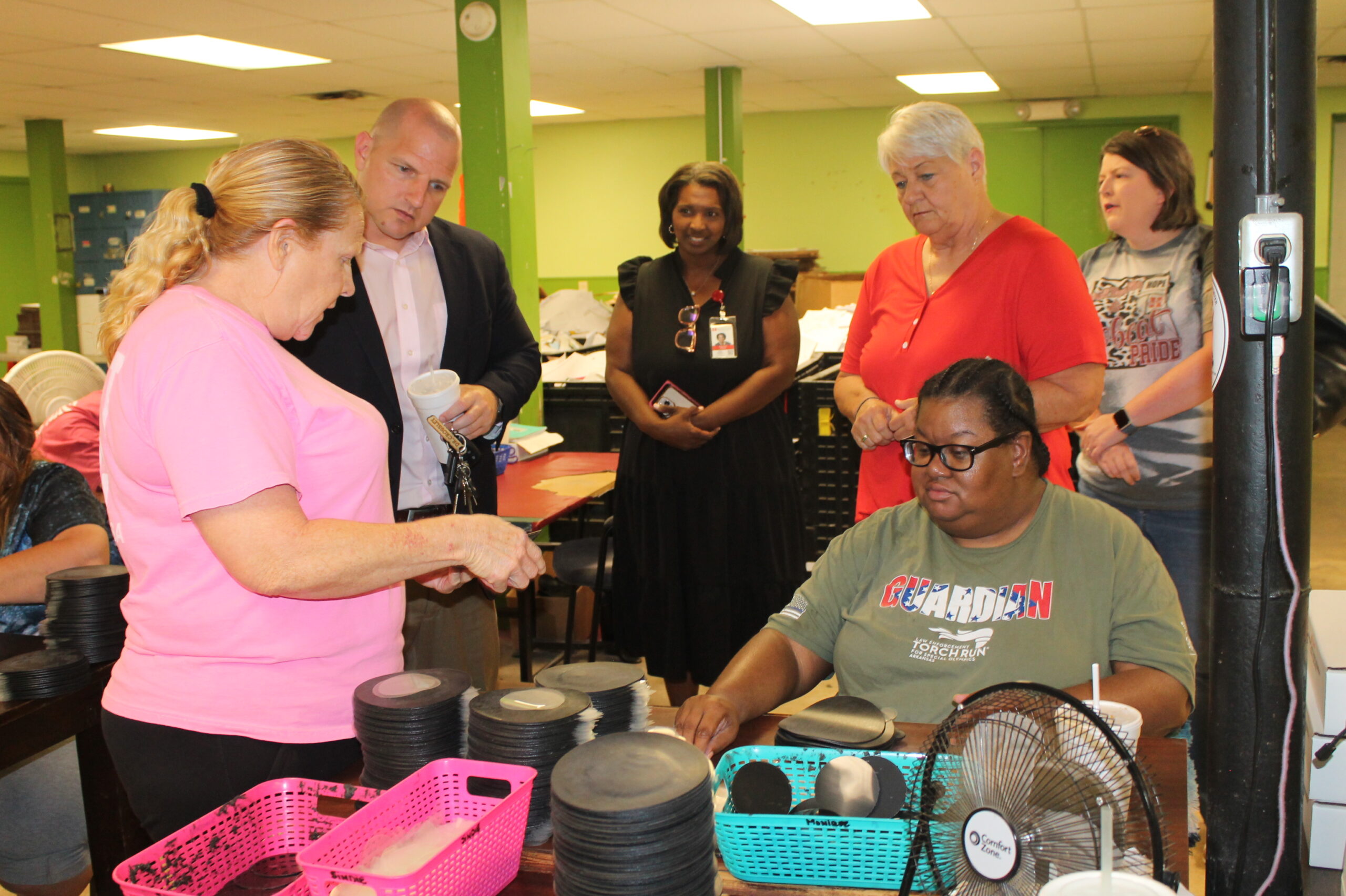 The group gathered at ROC local eatery The Melon Patch before taking a walking tour of the buildings nearby containing the Contract Labor employees, the Recycling Center and to ROC’n Reruns thrift store. The visitors were captivated while observing and asking questions about the various jobs and opportunities that fill the day for many ROC individuals.
