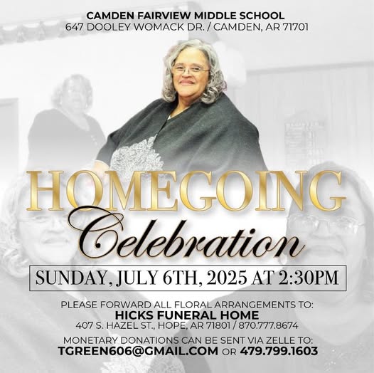 Her earthly vessel now rests peacefully at Hicks Funeral Home, Hope, Arkansas, but her soul has taken flight to the eternal Paradise not made with hands, where the saints rejoice and the angels sing.