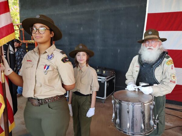Nashville is known for their long-time July 4th celebration, “Stand Up for America”. There’s always plenty of music, patriotic presentations, and a fine fireworks show. Two scouts from Troop 5 in Hope joined leader Les Patterson in presenting the colors July 4th at “Stand Up for America”.