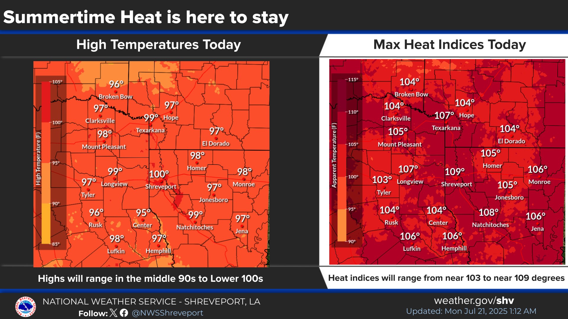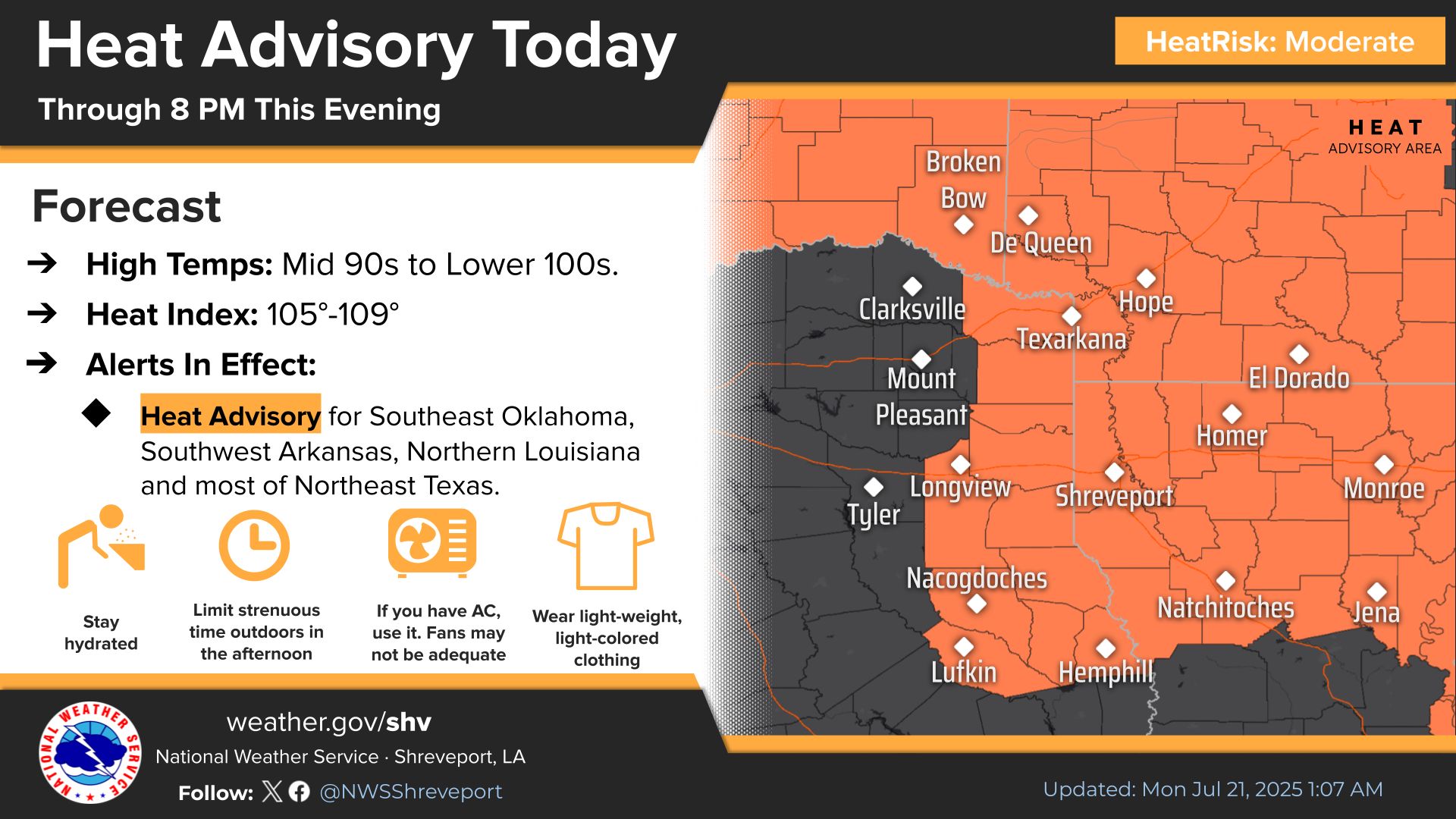 Featured Hempstead County News Nevada County News News Regional News Heat Advisory in effect today National Weather Service-Shreveport July 19, 2025