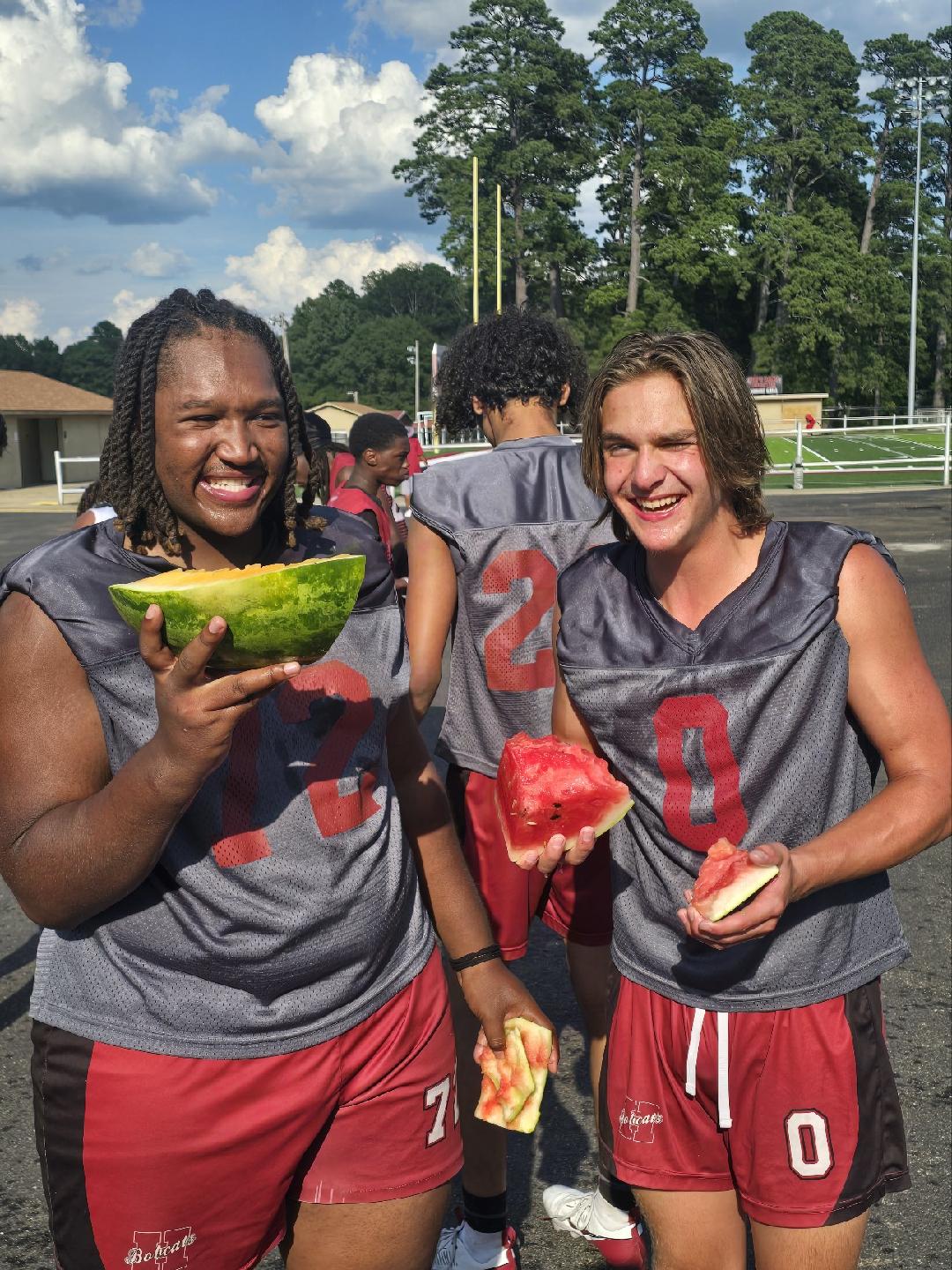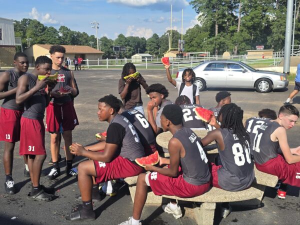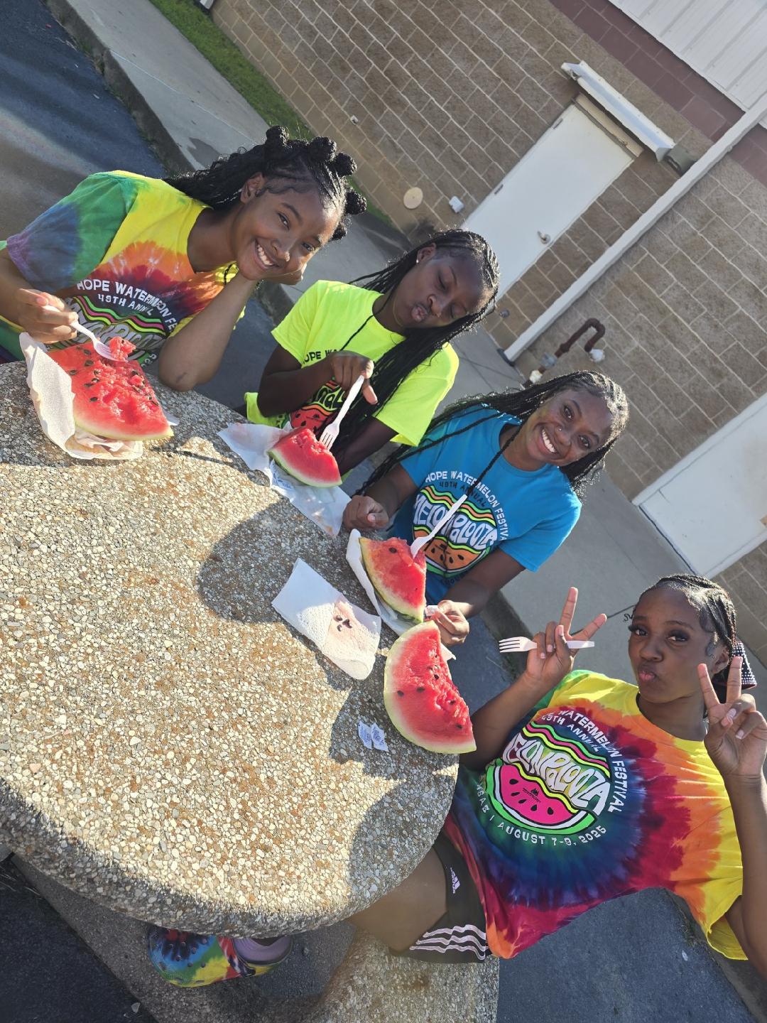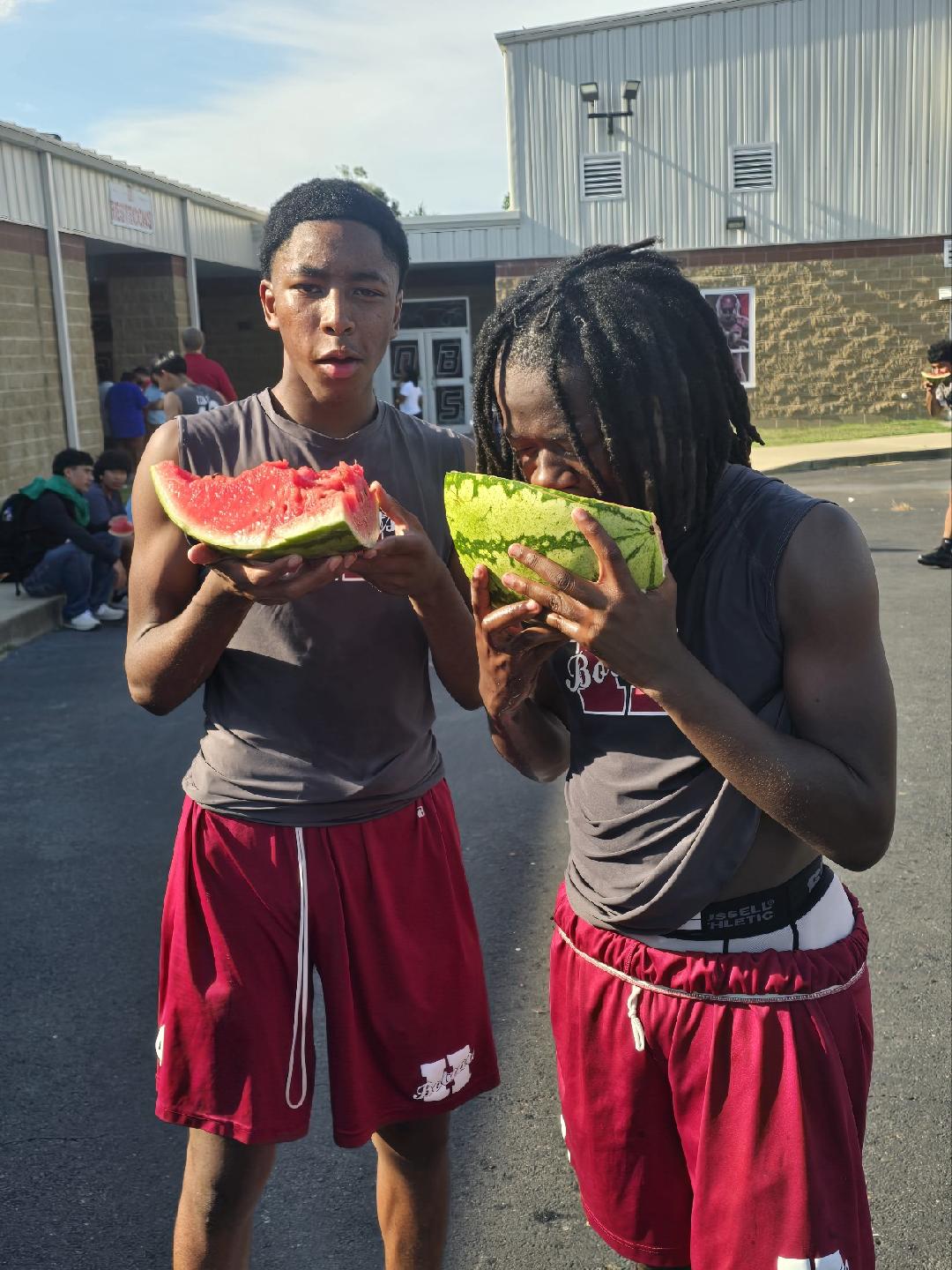 The Brotherhood of Fulton recently treated the Hope High Athletes and Band to ice-cold watermelon.  Judging from the smiles from these HHS students, the watermelon was much appreciated!