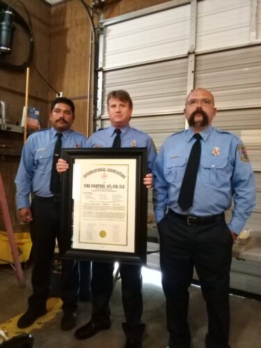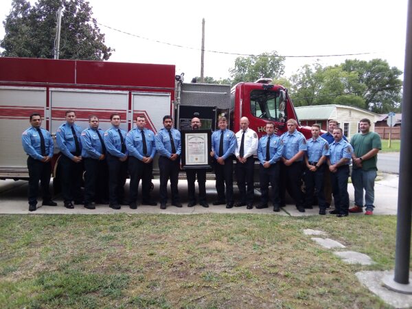 HOPE – A firefighters union induction ceremony took place at Hope Fire Station #2. Seth Rainwater came from Little Rock to perform the induction, swearing in Hope Firefighters into the IFF (International Fire Fighters) union and its state organization APFF (Arkansas Professional Fire Fighters). This will bring more resources to Hope firefighters for mental and physical health. This includes treatment for burns, smoke inhalation and other things as well. The union’s name is Hope Professional Firefighters. The international union has 360,000 members and is growing unlike other unions. Hope is part of the international and the state both now. They have created their own account. They want to do raffles and fundraisers and pass the boot and donate money. They want to get out in the public and donate. They want to donate where they can for fire related organizations – for kid burn situations and other things, local charities and fundraisers outreach.