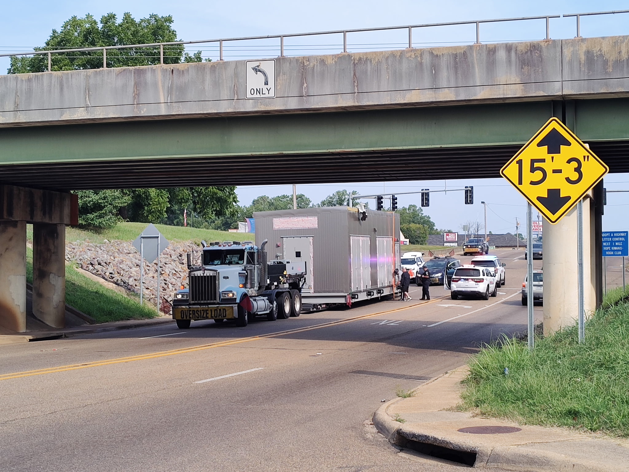 A wide load on Hervey Sunday (9-14) in Hope turned out to also be too tall to go under the railroad bridge. The driver quickly stopped and backed up when he realized the cargo was scraping the bottom of the bridge. Law enforcement officers quickly responded and got the truck turned around on Avenue B without incident.