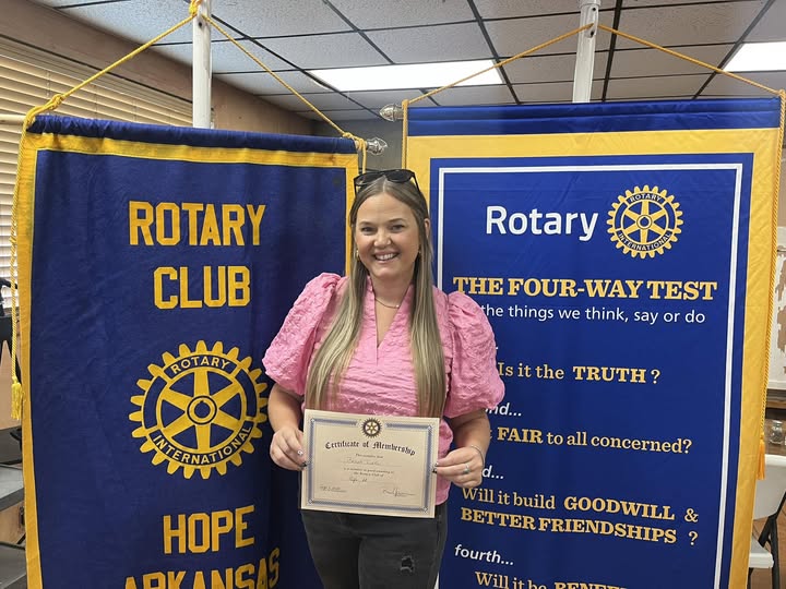 HOPE – The Hope Rotary Club is excited to welcome Brandi Tuttle, Administrative Assistant with Hempstead County Economic Development, as the newest member of the Club! Join us in giving Brandi a warm Rotary welcome as she begins serving our community with us.