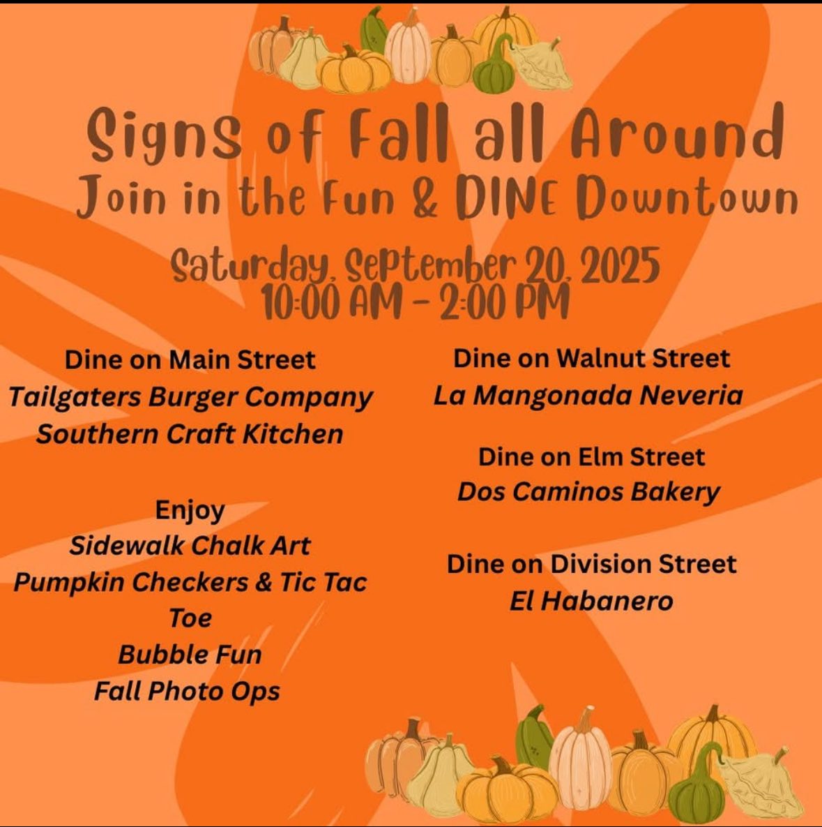 Everyone is encouraged to join in the festivities of the day that will include Fall Photo Ops, Pumpkin Checkers & Tic Tac Toe, and Sidewalk Chalk Art fun thanks to the Southwest Arkansas Arts Council.