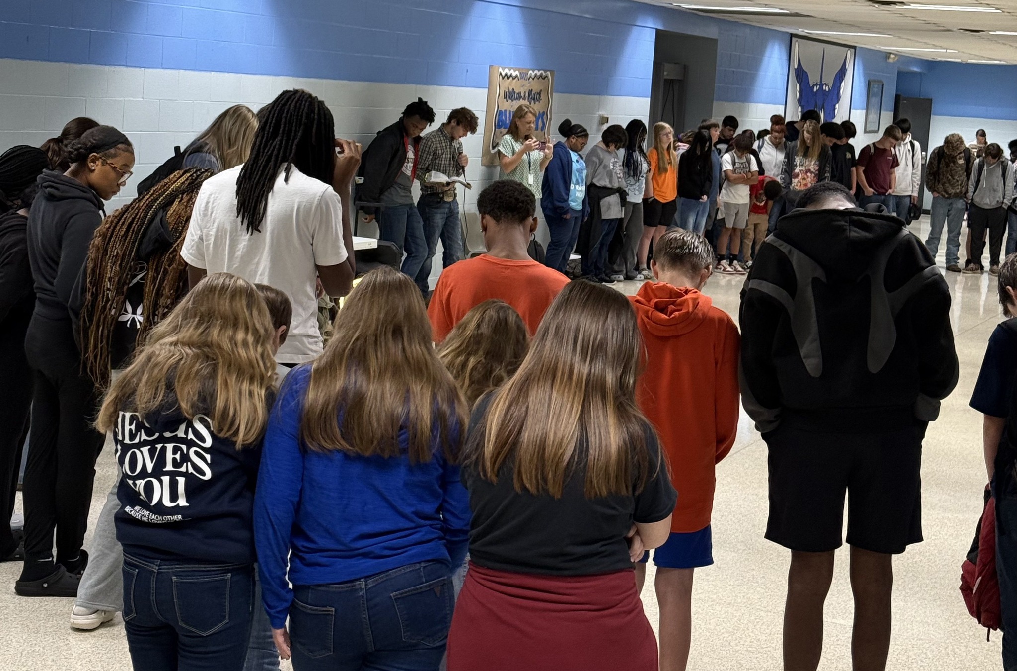 “See You at the Pole” activities were held at schools around the area on Wednesday (9-24).  Due to the rainy weather, the students at Nevada gathered inside to pray for each other, their families, their community, and our country.  The Nevada Christian Club (in association with FCA) is also prayer for YOU!