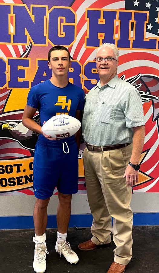 HOPE – We would like to congratulate this week’s member of the Spring Hill Bear football team, Jackson Putz, for being the “Farm Bureau Player of the Week” for last week. Jackson, #20, is a Senior who had 59 yards rushing, 2 receptions, and 2 touchdowns in the Bear’s big win against Mineral Springs last Friday night.
