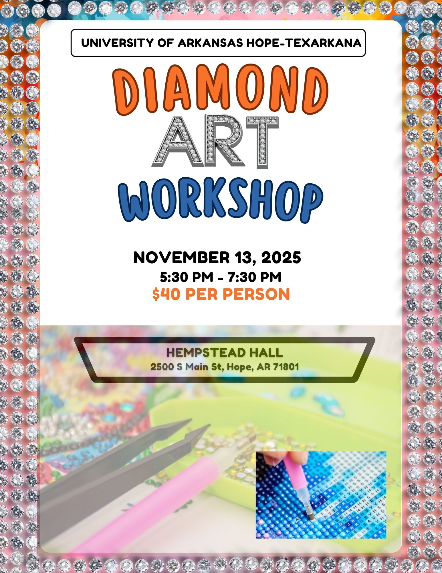 HOPE – The University of Arkansas Hope-Texarkana (UAHT) invites the community to unwind and recharge at a special Diamond Art Self-Care Workshop on Thursday, November 13th, at 5:30 pm at Hempstead Hall.