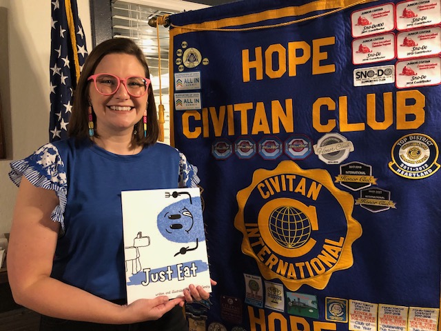 Occupational therapist and children’s book author and illustrator, Jennifer Gentry of Spring Hill, was a recent guest of the Hope Civitan Club. In addition to a short recap of her writing success, she led Civitans in a fun-filled exercise in illustration, proving that almost everyone can draw. She also presented an enlightening program on occupational therapy and its applications for helping children with certain issues that might affect reading success. Her books Shoes On, Car Ride, and Just Eat are available on Amazon, and she hinted that a fourth book is forthcoming. For more information, go to JenniferGentryBooks.com.