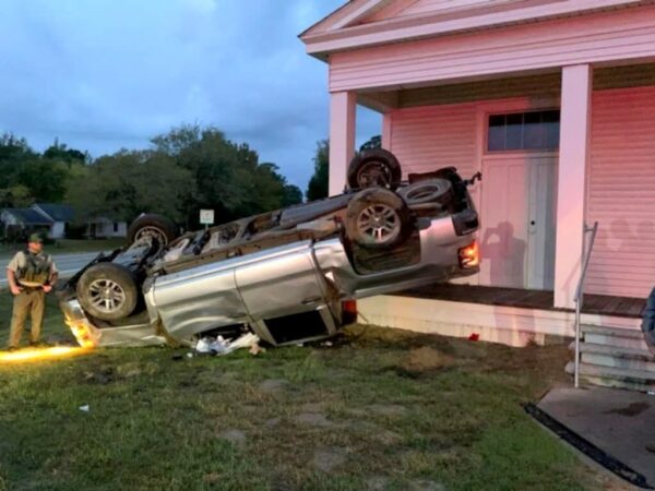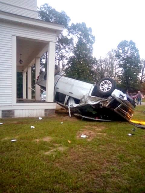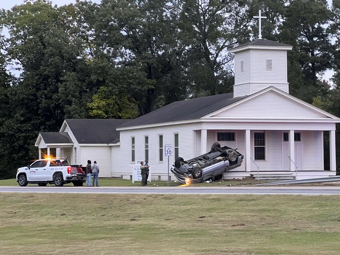 One vehicle accident before 8:00 am Saturday in Washington, left 278 and flipped by the church…. photo courtesy Jerry Pruden.